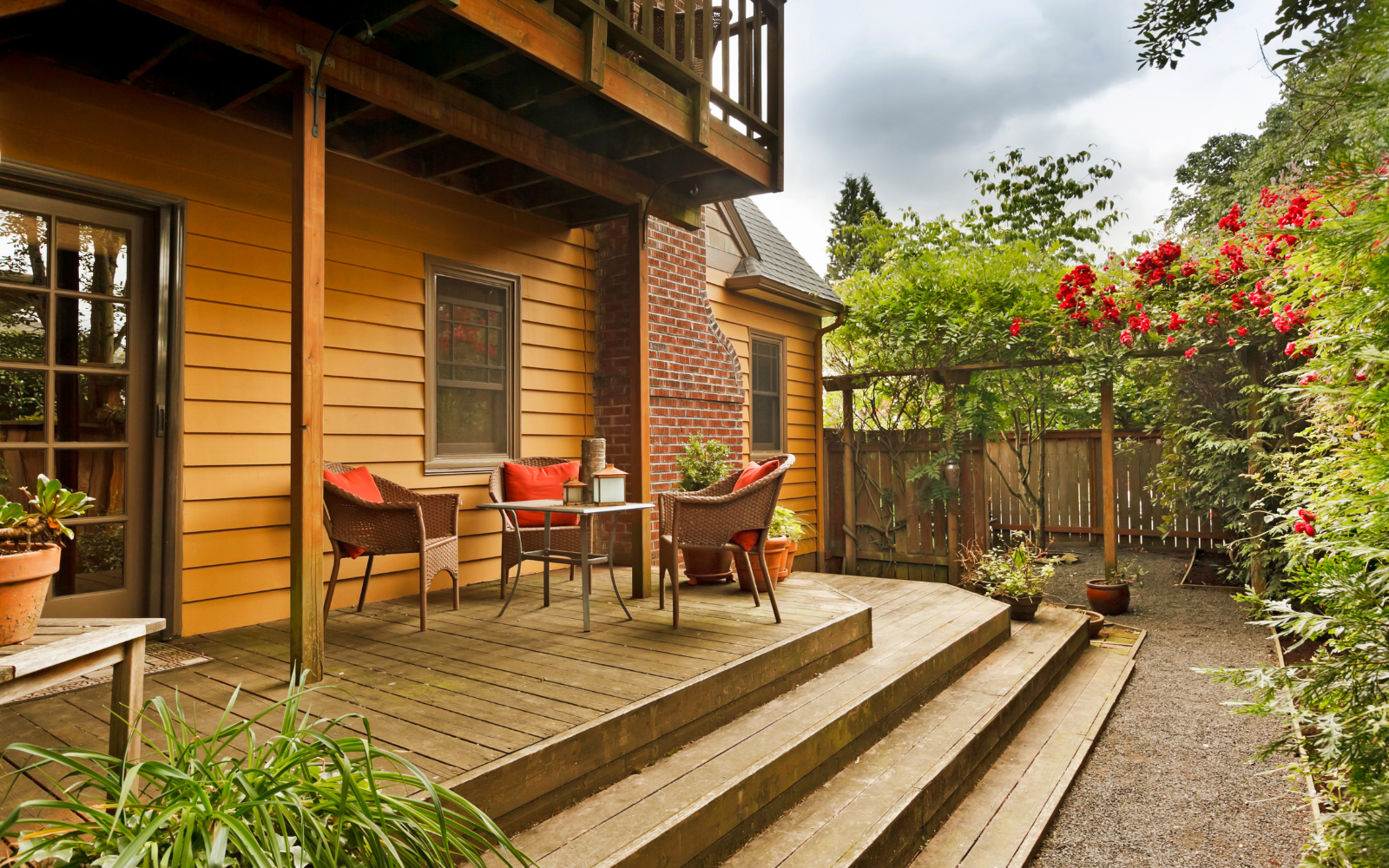 Composite decking is durable, resistant to fading, and easy to clean, making it a practical choice for a low maintenance backyard.